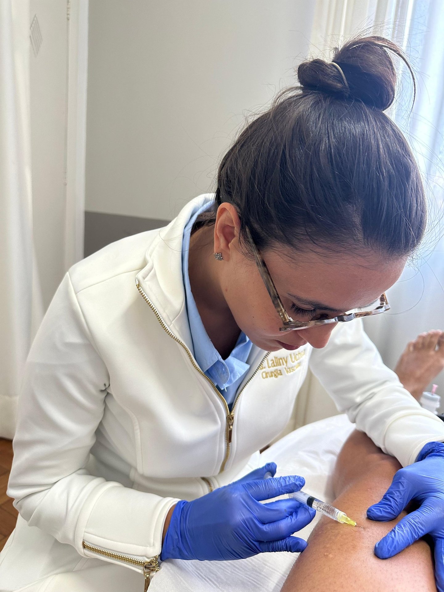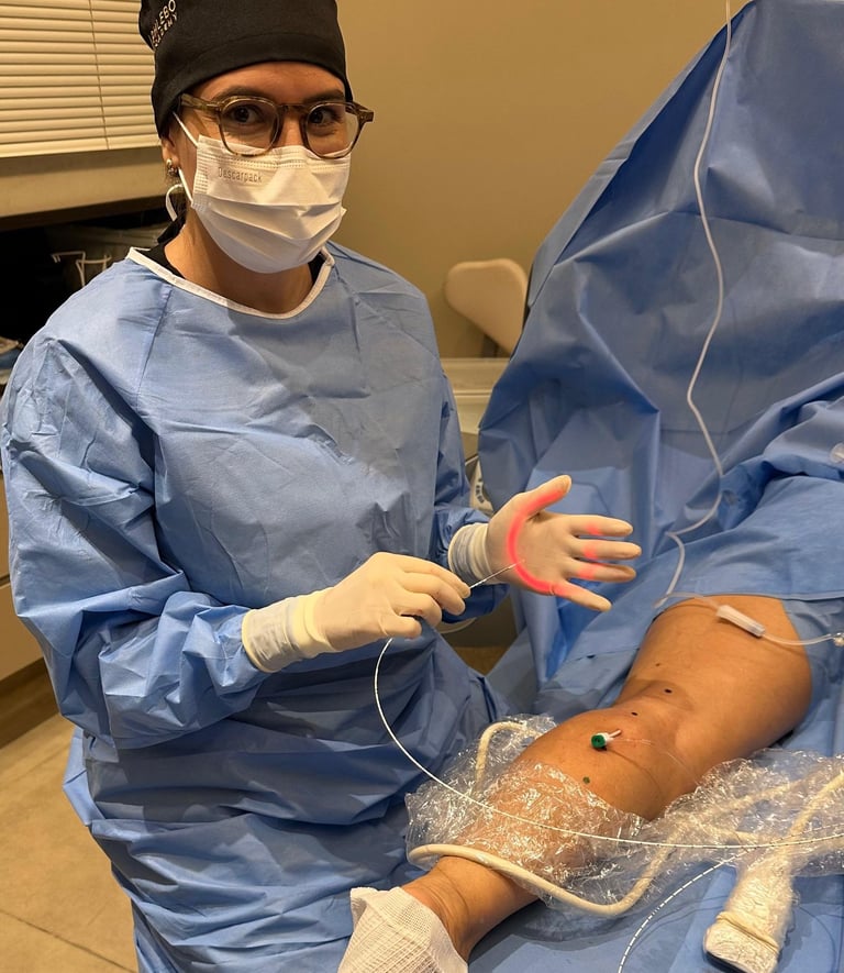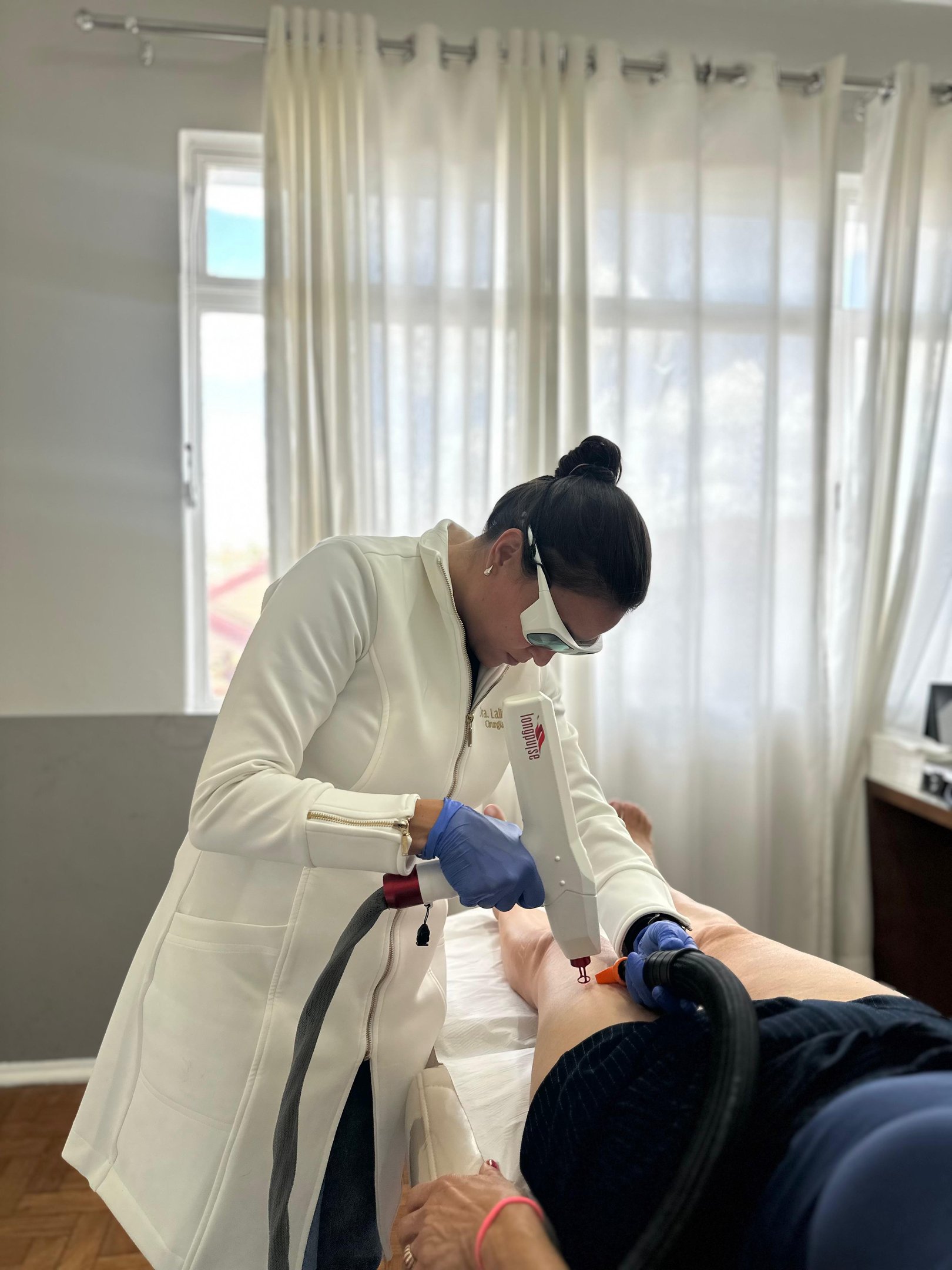 Muitas pacientes procuram o tratamento pelos vasinhos aparentes, mas o foco principal é sempre a saúde da circulação. A melhora estética é uma consequência do cuidado com o sistema venoso.